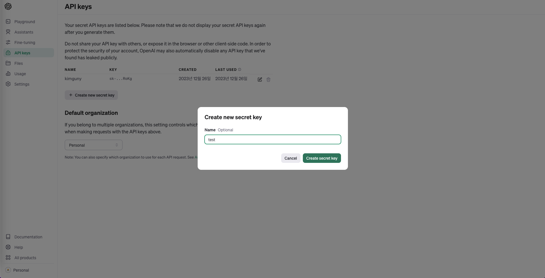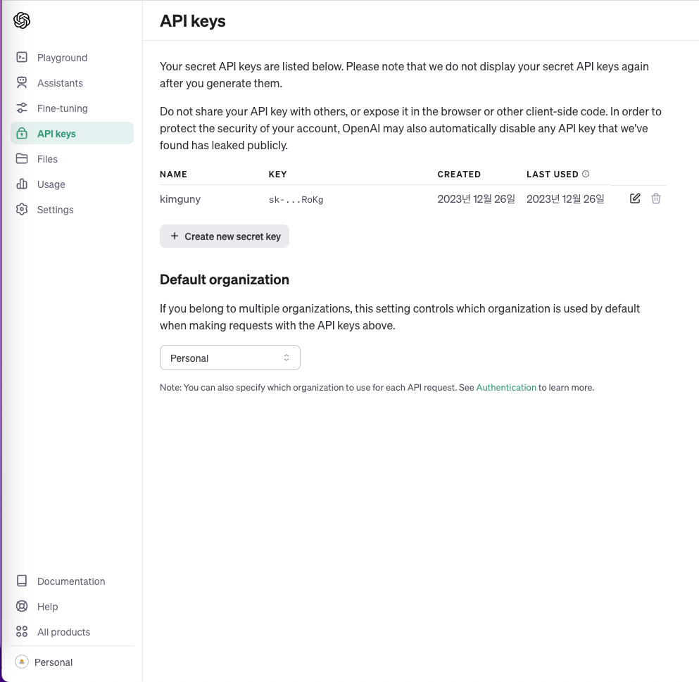 key를 생성하였으니 python으로 넘어가 key를 활용하여 ChatGPT를 구현해보겠습니다.