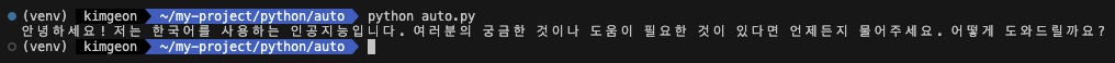 맨 처음 발급한 key를 my-key부분에 넣고 실행하면 content에 작성한 질문의 대한 대답을 반환하여 출력합니다.