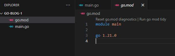 먼저 아래와 같은 명령어를 사용하여 새로운 Go 모듈을 생성하고 초기화 합니다. 이름은 원하는 이름으로 해도 상관 없습니다.